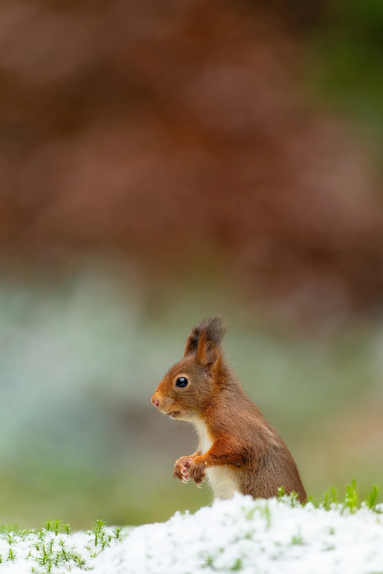 Hoewel de dag van tevoren de weersvoorspellingen niet al te best waren, variërend van regen tot kans op sneeuw, besloten we uiteraard toch te gaan. En dat bleek een goede keuze, want toen we ’s ochtends vertrokken, werden we verrast door een prachtig laagje verse sneeuw. Dat beloofde een fantastische dag te worden om vogels én eekhoorns in een winterse setting te fotograferen.