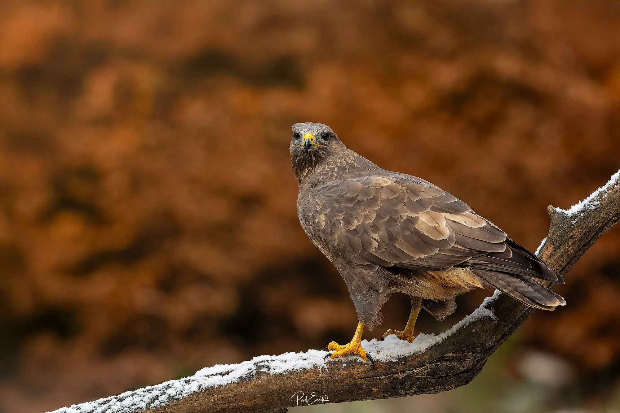 Na verloop van tijd liet ook de buizerd zich eindelijk zien. Hoewel hij in eerste instantie erg argwanend en alert was, durfde hij uiteindelijk toch naar de prooi te gaan. Helaas stond hij niet in de meest ideale richting, waardoor we vooral zijn achterkant zagen. Toch hebben we uiteindelijk nog een paar fraaie foto’s kunnen maken.