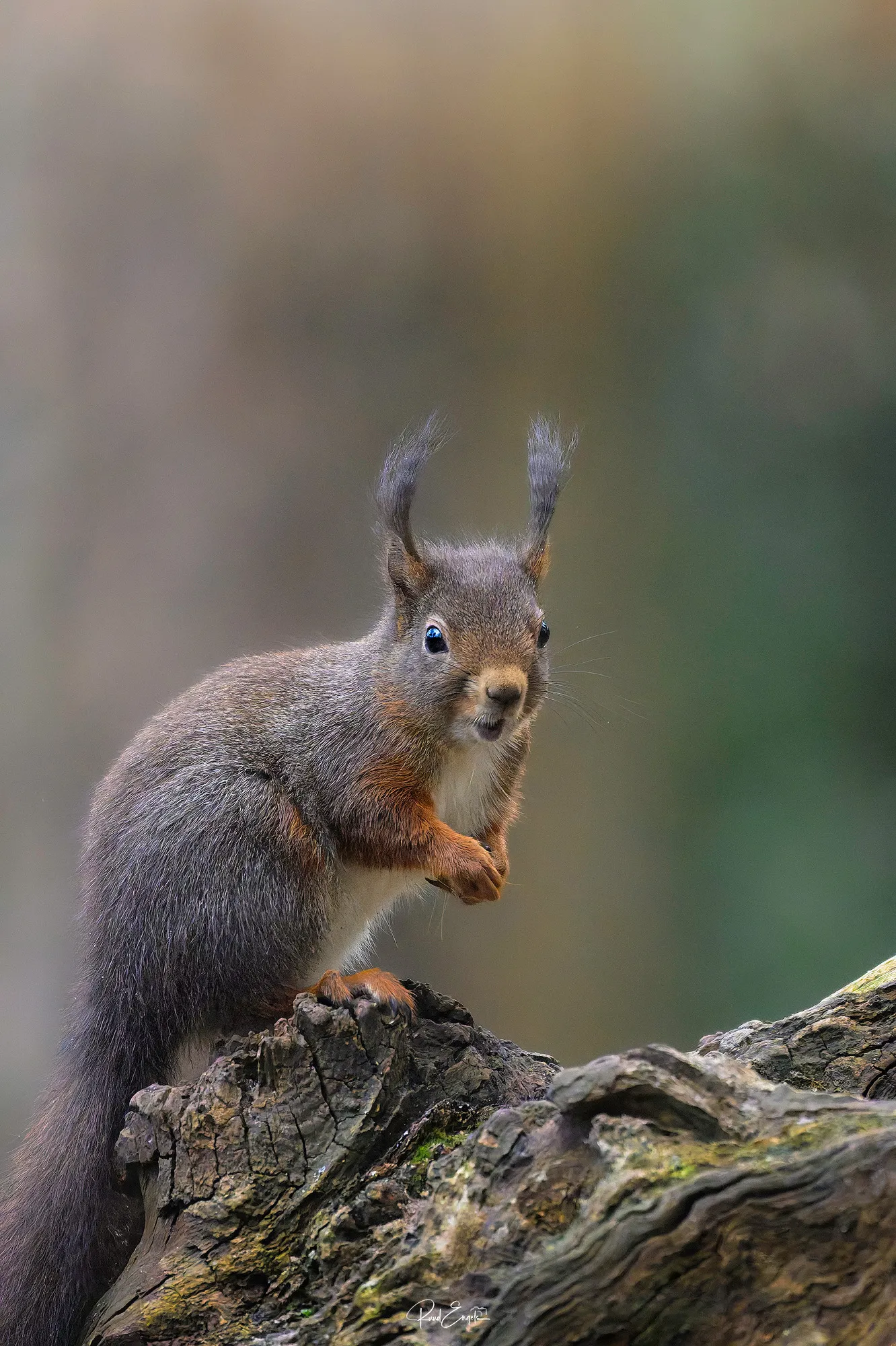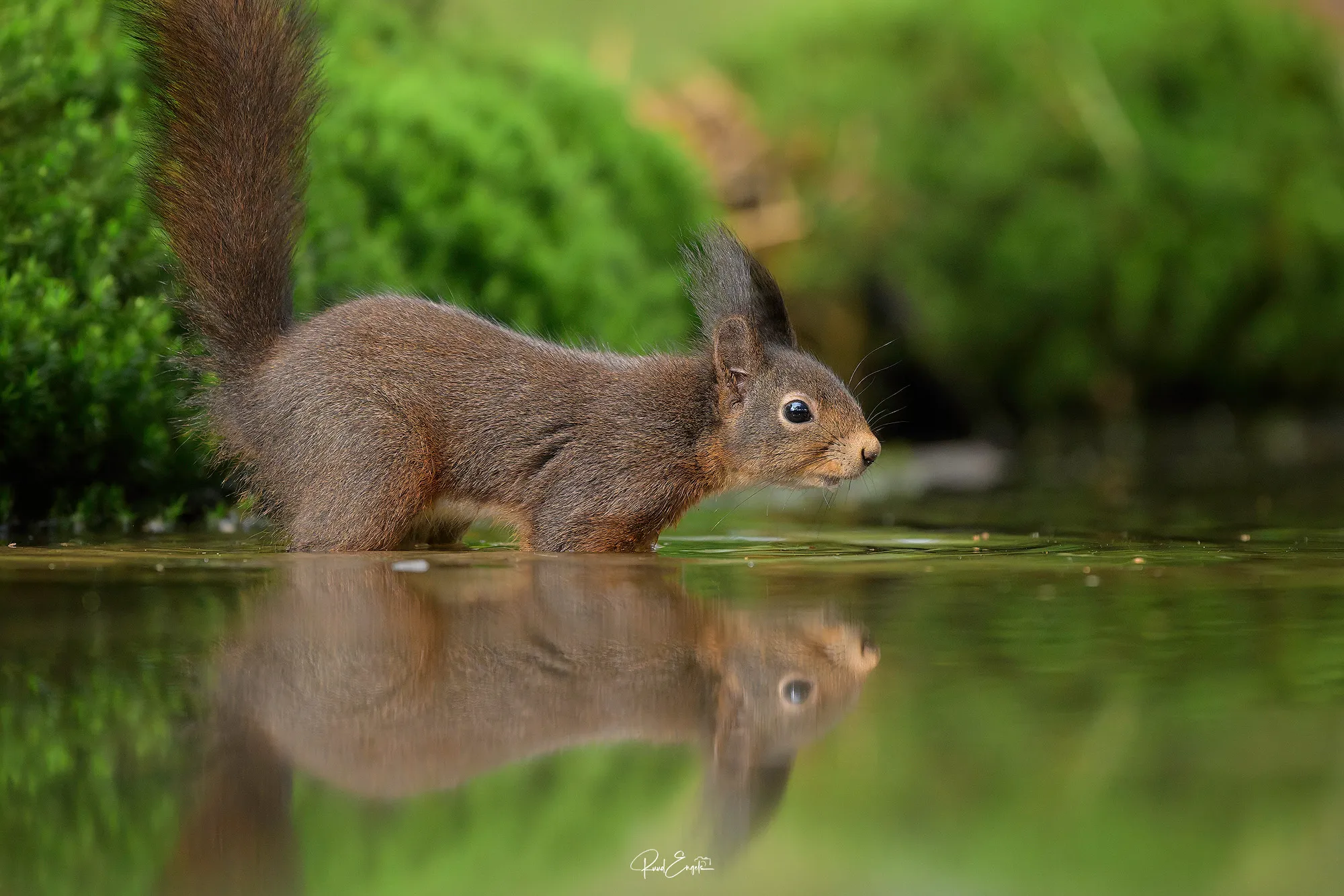 Dat er een eekhoorn zou verschijnen, verraste ons niet. Maar dat we er uiteindelijk zes tegelijk rondom de setting hadden, zorgde wel voor een bijzonder en druk moment.